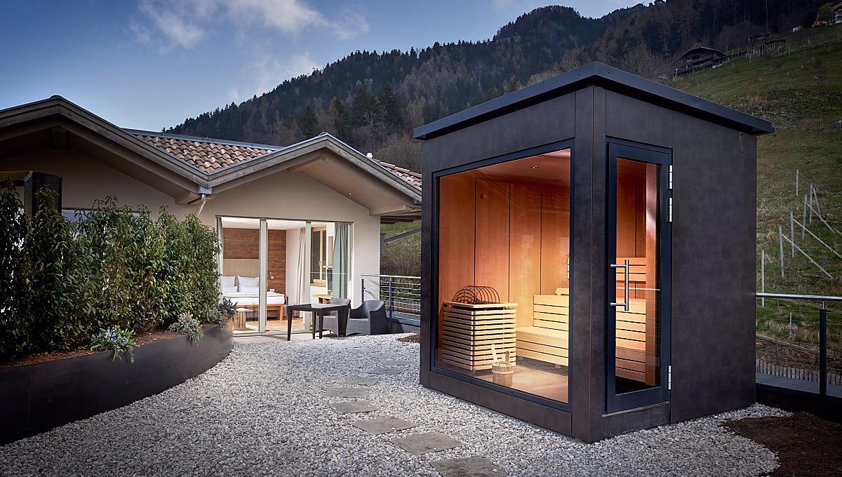 Dachgarten mit Liege, Finnische Panoramasauna und eigenem Hot-Spring-Whirlpool