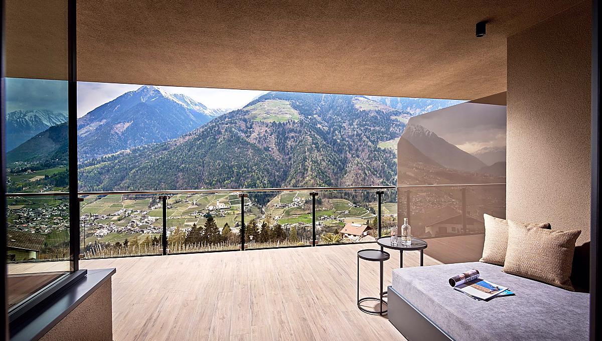 large west-facing balcony with sunbathing area and private hot-spring whirlpool
